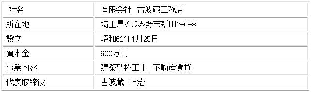 古波蔵工務店 会社概要|埼玉県・東京都の型枠大工工事